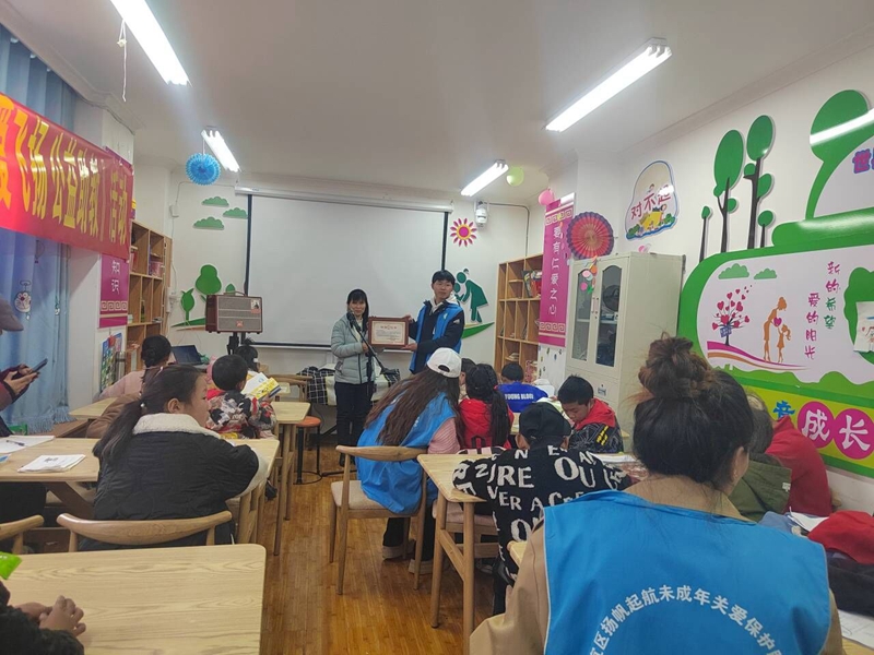 下午15:00,我院志愿者开展“书香致远 志愿同行”读书月主题活动。学院志愿者带领孩子们阅读图书,分享读书收获,鼓励孩子们上台分享书中的美丽故事,带动大家的阅读积极性,培养阅读爱好。随后,我院青年志愿者代表水利土木工程学院团总支向巴宜区未成年人关爱保护中心捐赠爱心书籍37套,合计1000余元。未成年人保护中心的秦老师向我院青年志愿者协会颁发捐赠证书,并表示衷心的感谢。最后,志愿者和孩子们一起打扫卫生,以自己的实际行动践行“劳动最光荣”的传统美德,本次活动于下午18:00圆满结束。