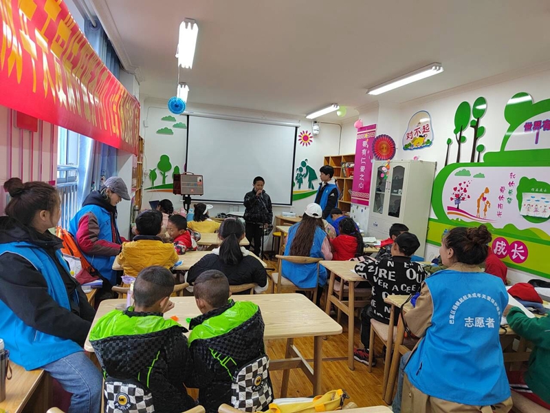 4月29日上午9:30,我院志愿者来到双拥路社区居委会与未成年人关爱保护服务中心负责人对接本次助教活动的相关内容。活动伊始,未成年人保护中心志愿者从交通安全、饮食安全、网络安全等方面为大家上了一堂“假期安全”主题教育课,引导大家树立自我保护和安全意识,做到“不信谣、不造谣、不传谣”,争做新时代好公民。紧接着,我院志愿者带领孩子们学习音符、音调,拓展孩子们的兴趣爱好,丰富孩子们的日常生活。随后,志愿者带领孩子们学习藏语文字,让孩子们在传承民族文化的同时学会用文字作为内心思想、感情和信息的转码,表达出最真实的感受。