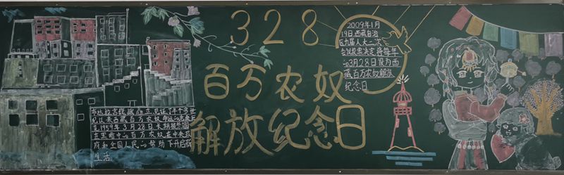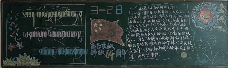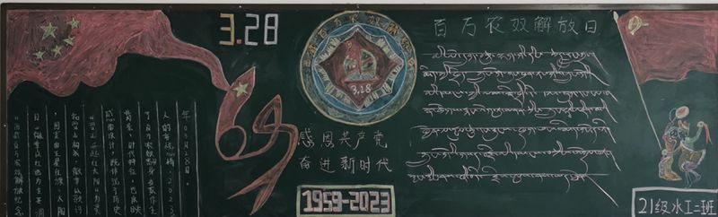 为纪念西藏百万农奴解放64周年,体现我院广大同学们的感恩情怀,进一步落实反哺教育、三观教育和感恩教育,展现大学风采,营造红色校园文化氛围。2023年3月24日至3月28日,水利土木工程学院举办“3.28百万农奴解放纪念日”主题黑板报活动。