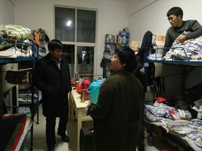 为切实做好2017年春季开学前后各项工作,了解返校学生情况、掌握学生思想动态,消除宿舍区各类安全隐患、保证各类保障措施到位学生身边,加深师生沟通交流、增进师生友情,确保学生顺利入住宿舍,我院辅导员、班主任在院领导的带领下,在学生报到注册日、开学第一天,深入学生一线,走访学生宿舍,了解学生返校情况、身体状况,问候服务到位情况,并向大家带去了新年的美好祝福。