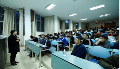 为深入贯彻落实习近平总书记系列讲话精神,特别是治国理政、治边稳藏新理念新思想新战略,深入推进我院“四讲四爱”主题教育实践活动,增强青年学生四个意识,特别是核心意识,突出“讲党恩爱核心”这个重点,提高思想认识、汇聚思想共识,根据学校统一安排部署,按照我院活动计划,2017年4月21日19:30,我院特邀学校宣讲团成员贺贤春副教授在第一教学楼1107教室为我院师生做了“四讲四爱”主题教育实践活动专题宣讲。学院副院长王培清、团总支书记孙凤荣、全体学生干部、青年学生代表参加了宣讲会。
