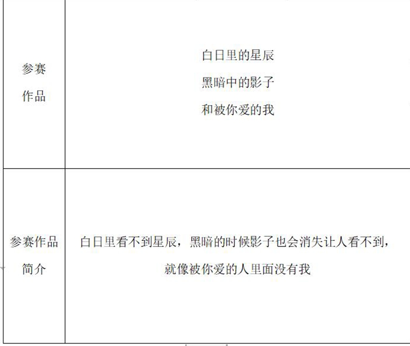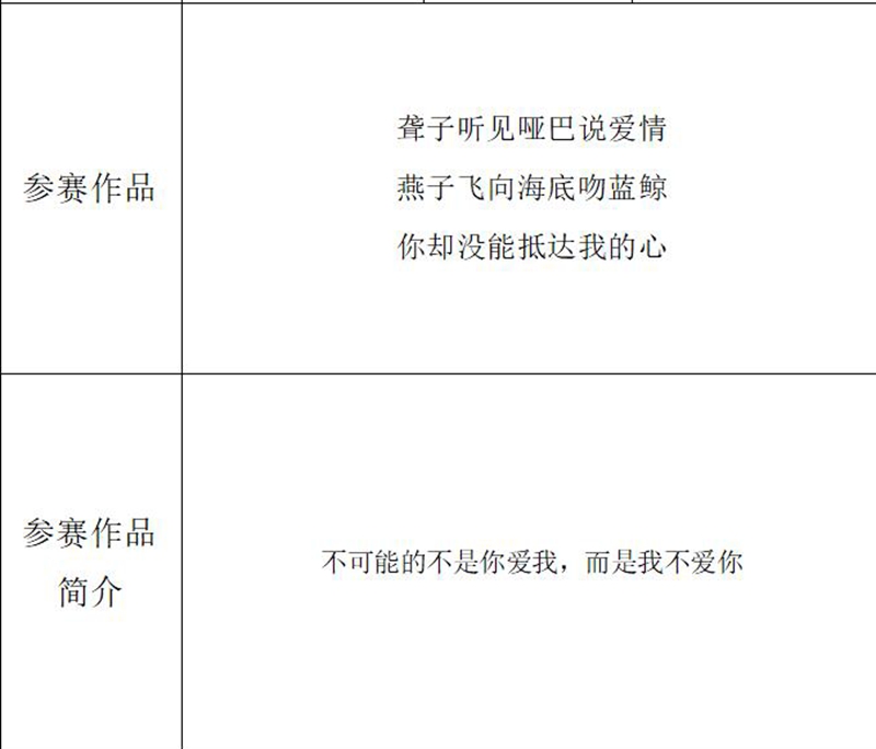 本次活动旨在为同学们提供一个展现自我、表达自我的平台,使同学们传达出自己的真情实感。到活动截止,学生会收到了大量文采极佳的作品,学生会干部对作品进行了严格评选。同学们的作品,短短三行,是信也是诗,让读者在简练的语句中感受字里行间丝丝入扣的情意。拈花间,是瓣落的眷恋。落笔时,是抒情的相思。三行情书,字里行间流露着同学们细腻的情感,或饱含相思或充满感激、亦或是表达爱意。一字一句,丝丝扣入,动人心弦。一言一语 ,声声入耳,温暖人心。评审期间,评审团秉承公平公正公开的原则,综合各项考评要求,按照评分细则,对每份作品评出相应的分数。最终刘志丹、毛诗吟、曾横等十名同学分别荣获本次比赛的一等奖、二等奖、三等奖及优秀奖。