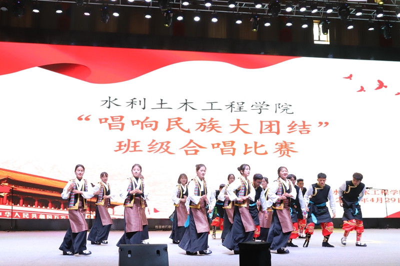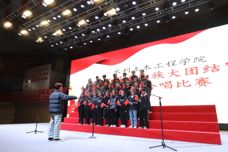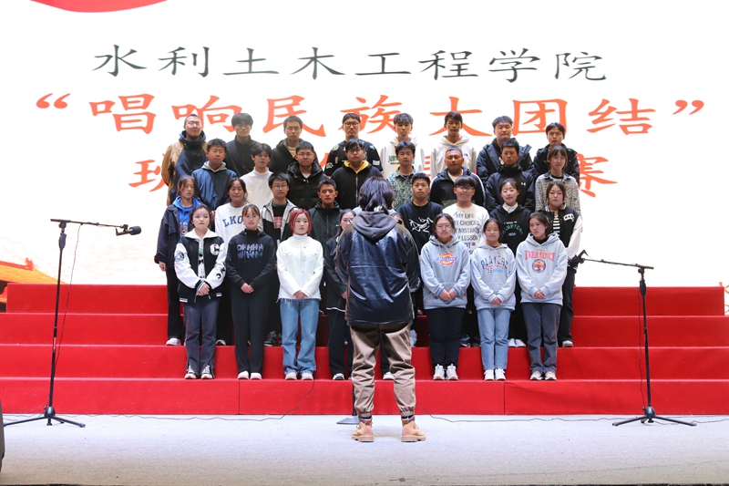 为深入学习贯彻习近平新时代中国特色社会主义思想,铸牢中华民族共同体意识,增强我院学生使命感和责任感。水利土木工程学院于2023年4月29日在文体馆组织开展“唱响民族大团结”主题大合唱初赛活动,水利土木工程学院学生科科长石徐、团总支书记续辉及全体学生参加此次活动。