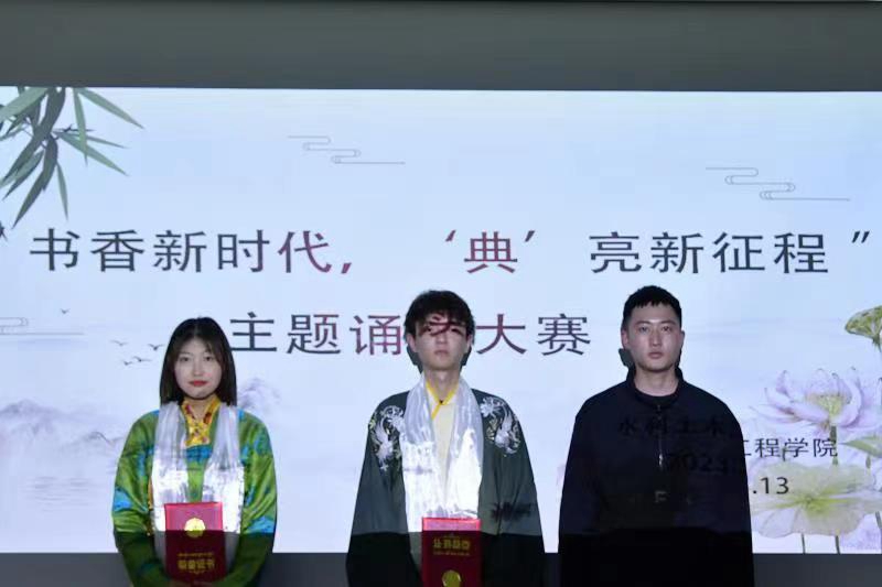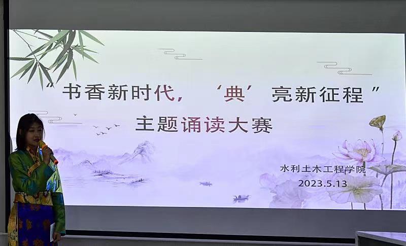 为贯彻落实党的二十大精神,深化全民阅读活动,弘扬中华优秀语言文化,营造浓厚的书香校园氛围,激发大学生对中华经典的热爱。水利土木工程学院于2023年5月13日下午15:30在第四教学楼101教室举办“书香新时代,‘典’亮新征程”主题诵读大赛。