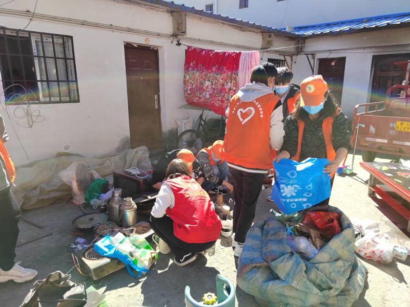 上午10时,我院青年志愿者与沿河社区居委会一行20余人来到绿色通道居住区,为社区居民阿旺、李朝玉、赵怀山等5名高龄、孤寡、病残及特困老人过了一个别开生面的生日,送去了米、面、油等慰问品,并以歌舞为老人们送上生日的祝福。在活动中,志愿者们每到一户,与老人们话家常,倾听他们讲述过去的故事,帮助老人洗头、剪指甲、打扫室内卫生、更换老旧线路,陪伴老人们度过了一段温情时光。