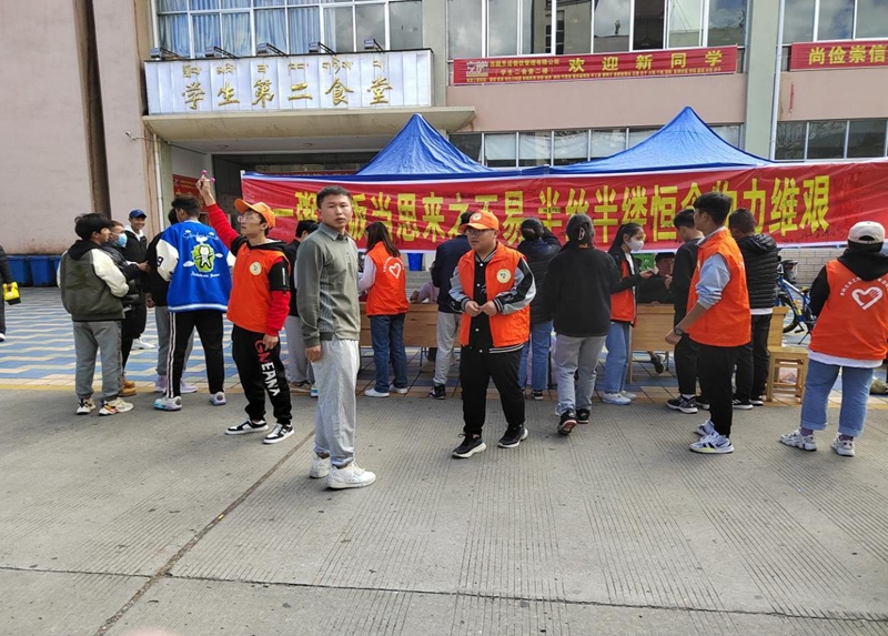 为践行习近平总书记关于坚决制止餐饮浪费行为的重要指示精神,进一步弘扬中华民族勤俭节约传统美德,倡导文明健康生活方式。10月17日,我院青年志愿者协会在学生二食堂门口组织开展“粮食节约 光盘行动 ”承诺签名活动,号召全院学生从实际行动杜绝“舌尖上的浪费”。