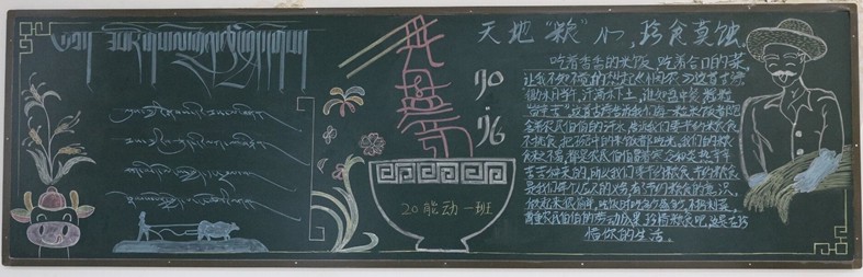 为深入贯彻落实习近平新时代中国特色社会主义思想,深入实施国家粮食安全战略,加大我院学生粮食安全教育力度,增强科学用粮意识,2021年10月15日至10月20日,我院举办了“节粮爱粮”主题黑板报评比活动,我院广大学子积极参加此次活动。