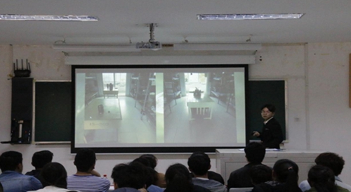 --我院学生会卫生部部长罗旭东为大家介绍优秀寝室