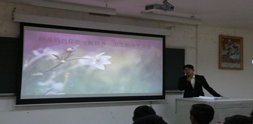 --我院学生会卫生部部长罗旭东为大家介绍寝室卫生存在问题