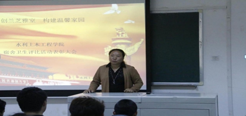 我院“共创兰芝雅室,构建温馨家园”宿舍卫生评比活动圆满落幕为推进“四讲四爱”主题教育的深入开展,在广大学生中倡导“讲党恩爱核心、讲团结爱祖国、讲贡献爱家园、讲文明爱生活”,我院以宿舍环境卫生安全为抓手,以改进宿舍卫生为重点,通过卫生大评比活动,促进温馨和谐稳定校园的建设,利用近四周时间的全面评比,活动取得圆满成功。并于2017年6月27日在4108教室,我院召开了卫生大评比活动总结及颁奖大会,学院党委副书记潘多、辅导员普布桑珠、学生会主席张林、副主席祁虎以及各班班长、寝室长参加了会议。