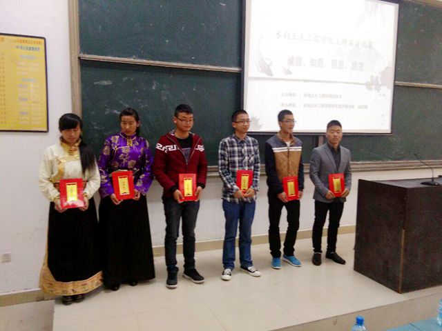 比赛开始前主持人详细介绍开展比赛的目的意义和比赛规则后,由各班级选拔推荐的选手们依次上场一一展示了个人风采,他们的演讲贴切主题、声情并茂,慷慨激昂、感人至深,让在场的师生感触深刻,仿佛经历了一场心灵的洗涤,体验到了人间的真情与至爱,学会了如何去实现自己的人生价值。经过紧张而精彩的比赛,最终边巴格桑同学以94.3的高分摘得一等奖。赛后,团总支书记桑珠、学生辅导员敬久赟分别对本次演讲进行了详细总结和点评。