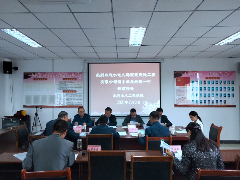2021年7月2日上午,水电九局西藏建设工程有限公司党委书记、总经理胡中阔一行莅临我院,同我院就人才交流与培训、资源共享与利用、技术创新与研发等方面合作事宜做了交流谈论。水利土木工程学院党委副书记、院长黎普明,副院长李成林、王培清,水电教研室主任吕琳莉老师,曹志翔教授,张文贤教授,宗永臣教授以及各教研室在校教师参加了交流座谈。