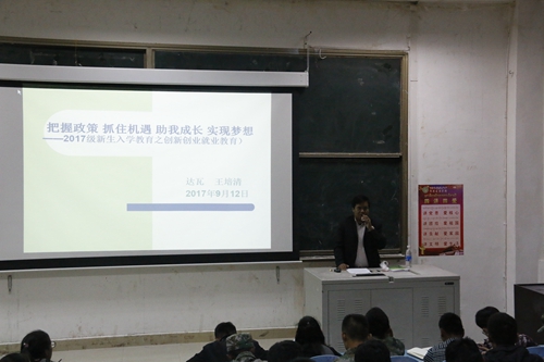 为了丰富我院2017级新生入学教育内容,加强新生创新创业就业教育,培养具有创业基本素质和开创型个性的人才,培育大学生创新精神、创业意识、创新创业能力、多岗位就业观念,2017年9月12日晚上7:30,我院在1017教室为2017级新生开展了创新创业就业专题讲座,学院党委书记达瓦、副院长王培清分别主讲,全体新生参加了学习教育活动。