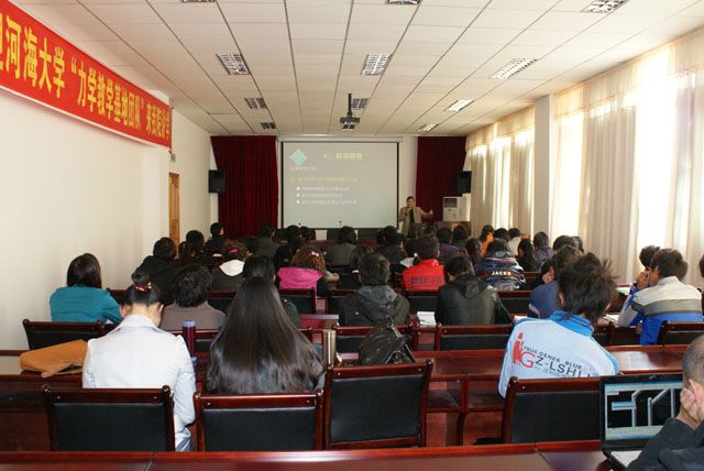 2010年10月11日,我院对口援藏院校——河海大学“力学教学基地团队”一行7人在河海大学教务处副处长邵国建教授、国家级教学名师武清玺教授带领下,来我院开展学术交流活动。