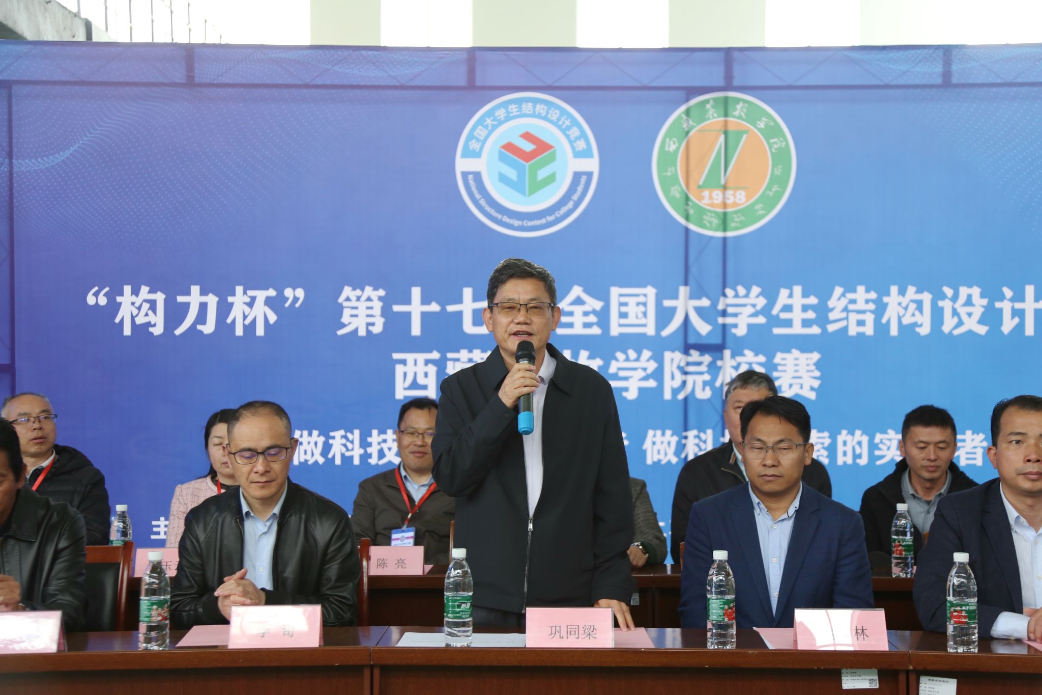 为培养大学生的创新意识、团队合作精神,提高大学生的创新设计能力、实践动手能力和综合素质,深入推进工程实践教育,浓厚校园科技文化氛围。2024年6月1日,由学校教务处主办、水利土木工程学院承办、工程实践协会协办的第十七届全国大学生结构设计竞赛西藏农牧学院校内选拔赛在高原水力发电实验室举行。学校党委委员、副校长巩同梁亲临比赛现场并宣布校赛开幕,学校教务处、科研处、学工处、水利土木工程学院相关负责人以及全体指导教师共计100余人参加比赛开幕式。
