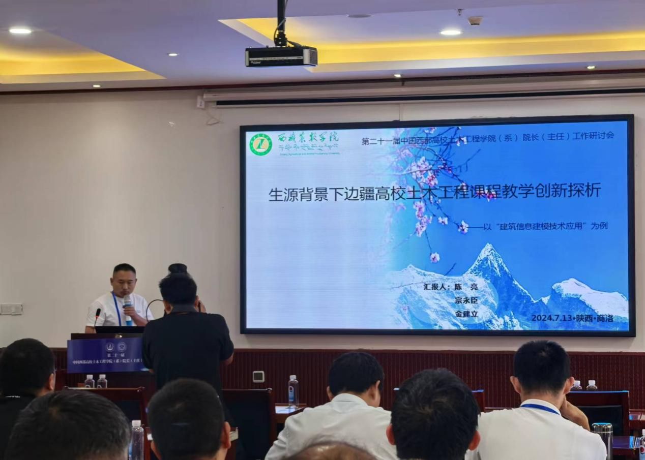 会议涵盖了基于“土木工程+”的跨学科专业交叉融合建设模式与创新实践等主题。期间,来自不同单位的代表们分享了各自的经验和见解。金建立老师开展了题目为“生源背景下边疆高校土木工程课程教学创新探析——以《建筑信息建模技术》应用为例”的专题报告,报告介绍了我校和水利土木工程学院的发展历程,对我院学生的生源特点进行剖析,结合《建筑信息建模(BIM)技术应用》课程作为研究实例进行有针对性的教学研究,与专家们进行了面对面的沟通。