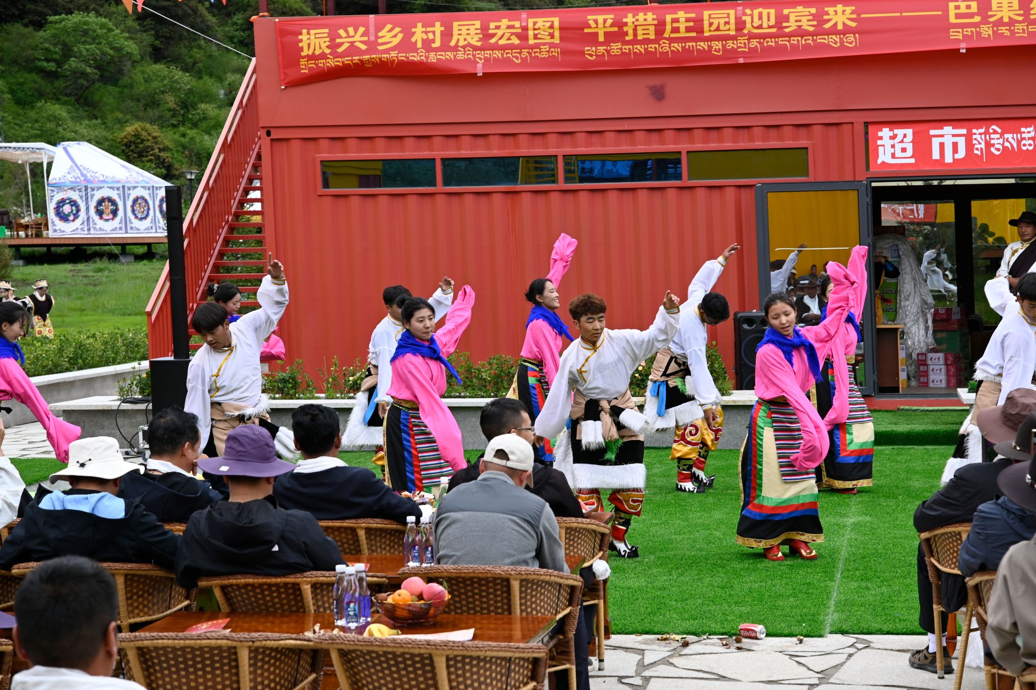 随后,学院志愿者们与巴果绕村村级文艺队共同演绎了情感炽热的《央恰传统锅庄》。台上舞步铿锵,传统与现代、学院与乡村的韵律在此刻完美交融;一曲舞罢,台下掌声雷动,欢呼如潮。