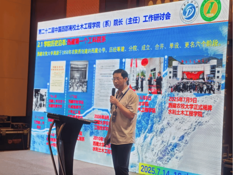 西藏农牧大学作为西藏参会的高校之一,我校水利土木工程学院党委副书记、院长王培清紧紧围绕工作研讨会主题,做了特邀报告“国家重大战略中的土木工程专业发展探讨”,引起与会专家的极大兴趣和关注,王培清并在会议研讨议程与各位专家进一步交流探讨,共同为西部高校土木工程学院(系)的发展建言献策,同时对提升了学校的影响力和知名度起到了积极的推动作用。