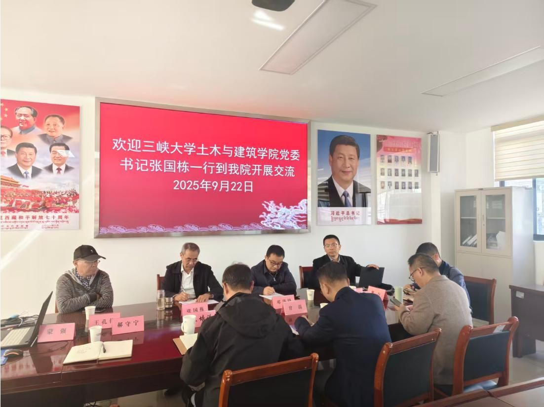 2025年9月22日下午,三峡大学土木与建筑学院党委书记张国栋、院长邓华锋一行来我校调研交流并座谈。西藏农牧大学水利土木工程学院党委副书记、院长王培清及双方相关部门负责同志参加座谈会。