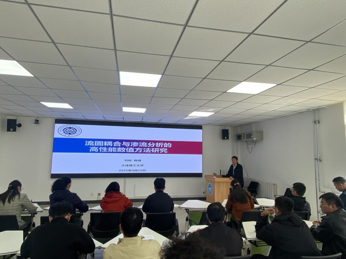 2025年9月22日下午3点30分,水利土木工程学院特邀大连理工大学刘俊教授与河海大学水利水电学院教师叶文斌博士在学院三楼305多功能会议室开展“流固耦合与数值计算方法”学术研讨会,会议由我院副院长甘磊主持。吕琳莉副教授、张玉云副教授等多位教师及在校研究生参与研讨和学习。