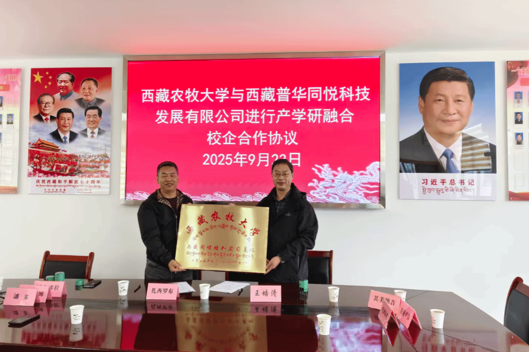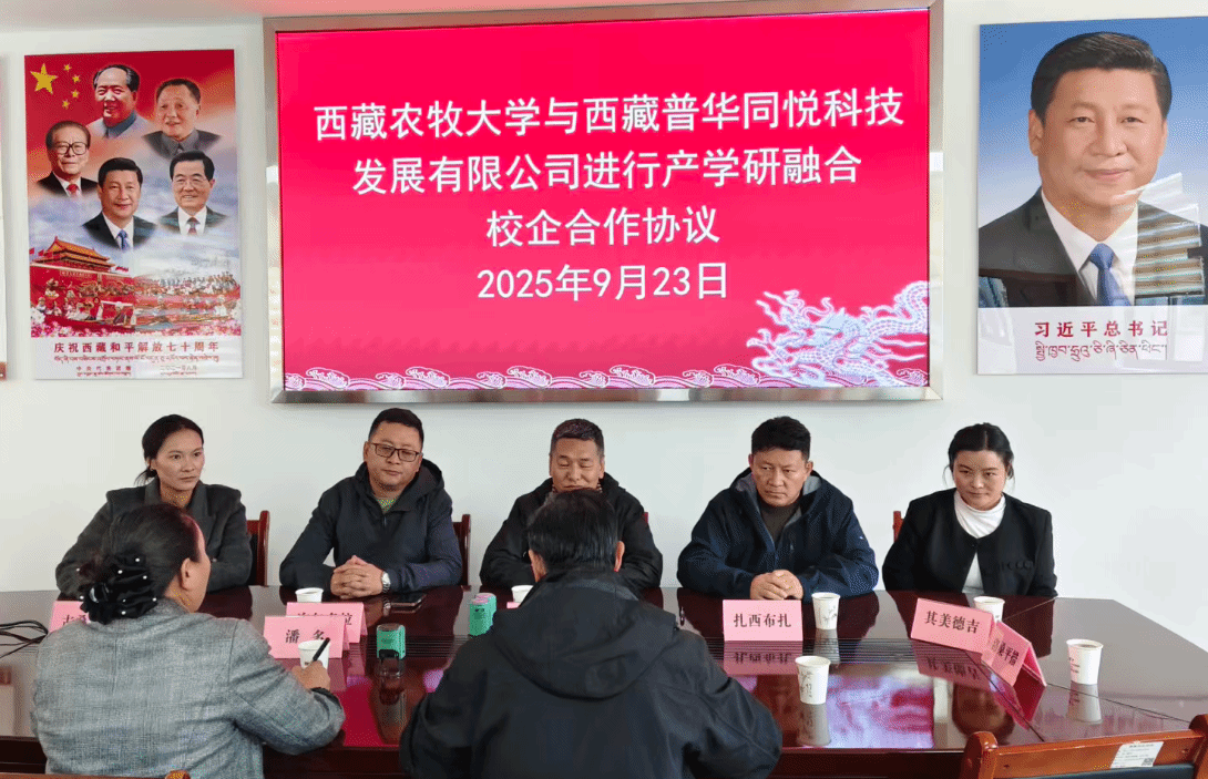 2025年9月23日下午1点30分,西藏农牧大学水利土木工程学院与西藏普华同悦科技发展有限公司校企合作框架协议签订仪式在水利土木工程学院会议室举行。水利土木工程学院党委副书记、院长王培清,党委副书记潘多,西藏普华同悦科技发展有限公司董事长扎西罗布、副总经理扎西布扎等出席签约仪式。