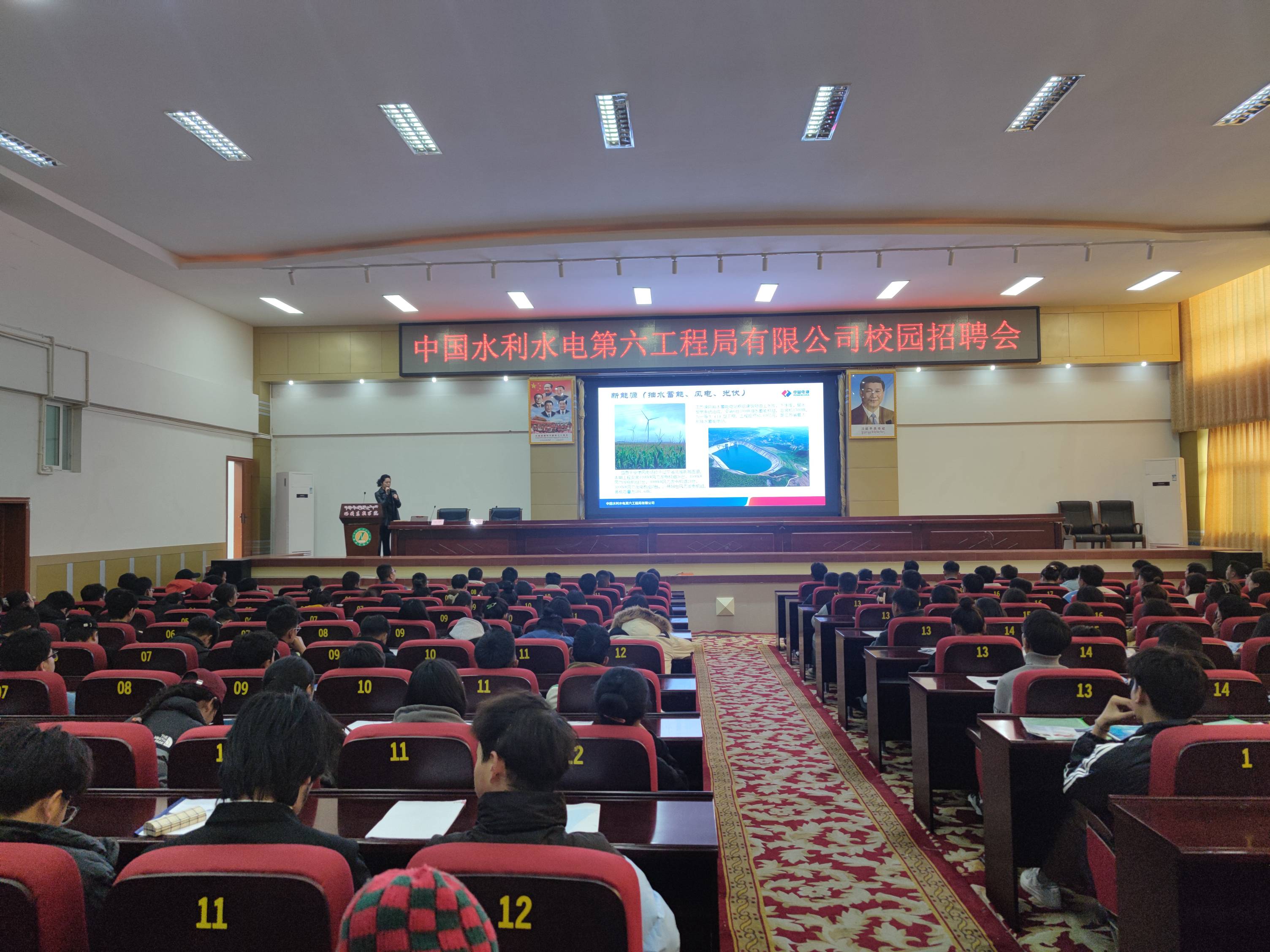 为深入学习贯彻党的二十大精神,落实党中央、国务院“稳就业”“保就业”决策部署,推进我院毕业生高质量充分就业,水利土木工程学院于10月17日下午在一号行政楼一楼会议室举办校园招聘会。本次招聘会邀请中国水利水电第六工程局有限公司进校宣讲,水利土木工程学院、电气工程学院2024届300余名毕业生积极参与。