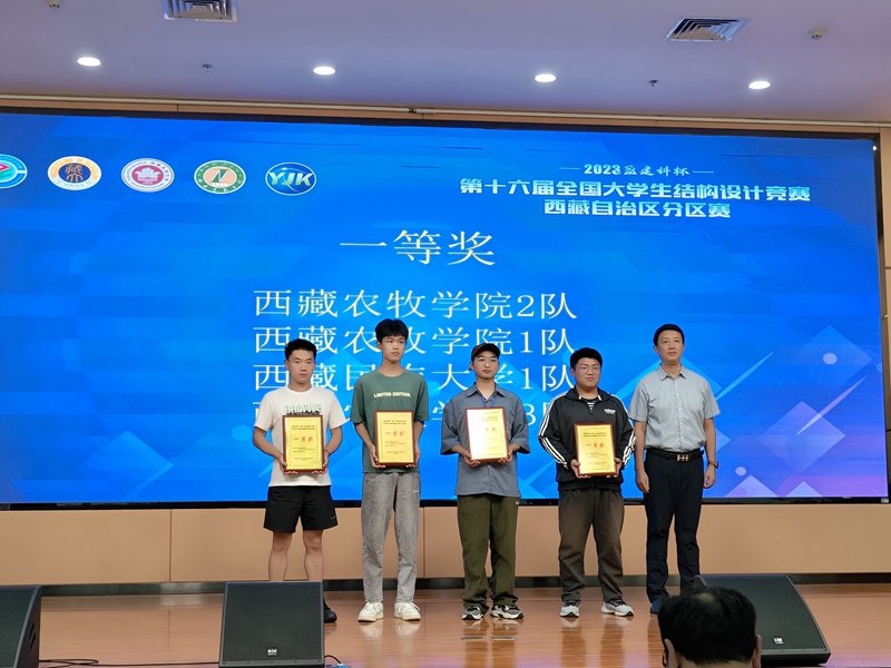 经过初选,本次竞赛由西藏大学、西藏民族大学、西藏农牧学院共12支代表队参加,我校由水利土木工程学院副院长陈亮教授领队,土木工程教研室何军杰、张永娟、张存3位老师一同带领4支队伍参赛。竞赛设置一等奖4项,二等奖三等奖若干。经过为期3天的激烈角逐,我校代表队斩获了此次竞赛的3项一等奖,取得了参加全国大学生结构设计竞赛西藏自治区分区赛以来最佳成绩,同时获得了10月份在长沙理工大学举办的国赛参与权。