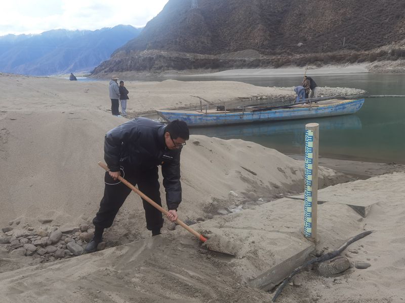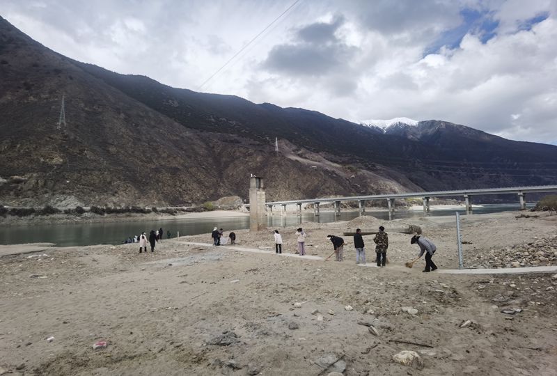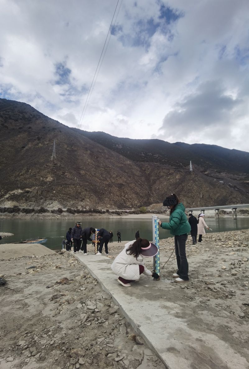 会后,水文站工作人员和全体师生来到了雅江岸边,共同开展河道保护活动。同学们携带卫生工具擦拭水尺,对水尺道淤沙进行清理,打扫河滩,捡拾白色垃圾。
