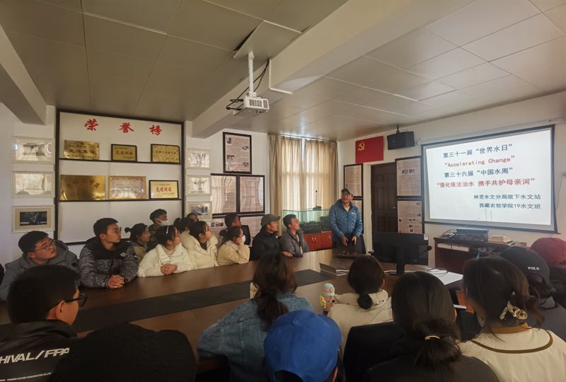为深入贯彻落实党的二十大精神和习近平总书记治水重要论述精神,3月22日下午,以世界水日和中国水周为契机,西藏水文林芝分局奴下水文站与西藏农牧学院驻站参加毕业实习的19级水文班联合开展了主题教育活动。主题教育主要活动以座谈会的形式开展,奴下水文站站长洛桑扎西向19级毕业实习师生介绍了本届世界水日与中国水周主题内容,并宣传了水文法律法规、节水知识等,介绍了雅鲁藏布江的相关水文情况。19级水文班的同学们与水文站工作人员进行了热烈的讨论。同学们各抒己见,畅所欲言。通过充分讨论进一步增强广大师生依法治水、惜水护水的意识,提高了同学们对中国水资源现状的了解和对中国水资源严峻形势的认识。更加深刻意识到水资源保护的重要性,今后要从自己做起,做爱水、节水、护水、懂水的好青年。