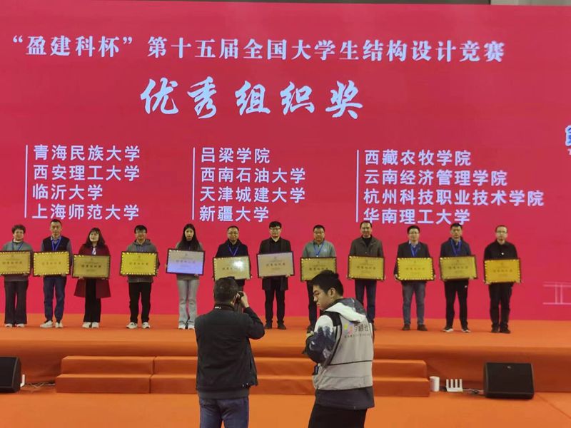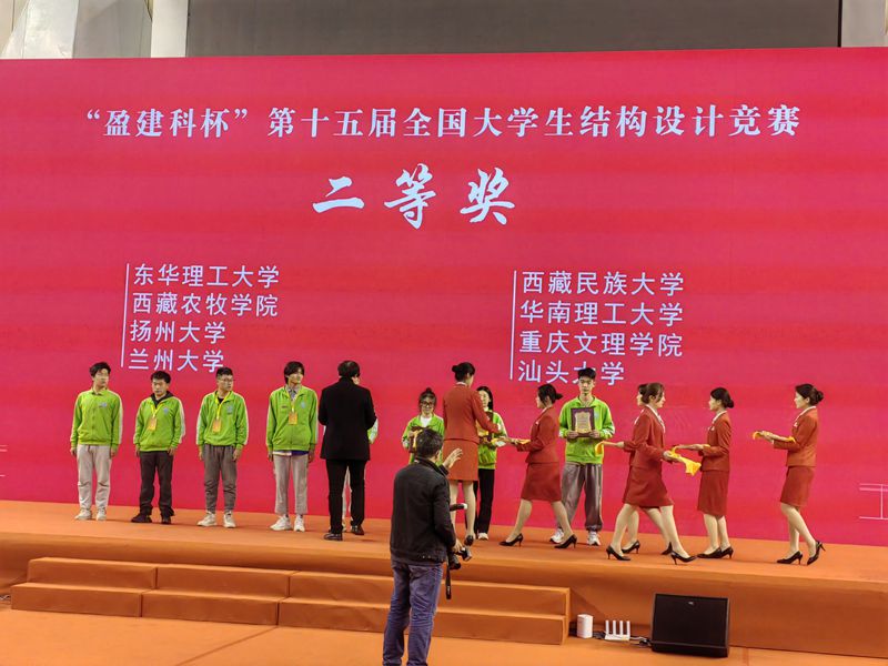 2023年3月23日—26日,第十五届全国大学生结构设计竞赛在太原理工大学举行。经现场模型制作、陈述答辩、加载测试等环节激烈比拼,我校“南迦巴瓦”代表队获得第十五届全国大学生结构设计竞赛二等奖。2022年7月由于我校成功举办了西藏自治区分区赛,我校还被授予第十五届全国大学生结构设计竞赛“优秀组织奖”。