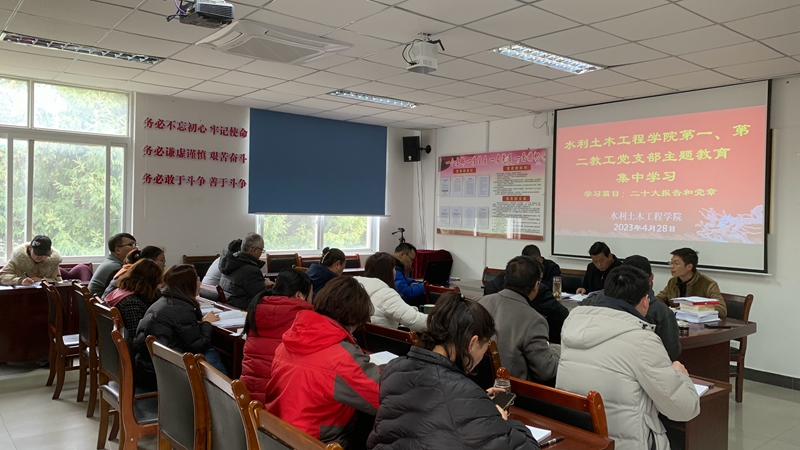 4月28日上午,我院教工第一、第二党支部学习贯彻习近平新时代中国特色社会主义思想主题教育读书班开班,全体在校教工党员参加。教工第一党支部书记张存主持开班式。