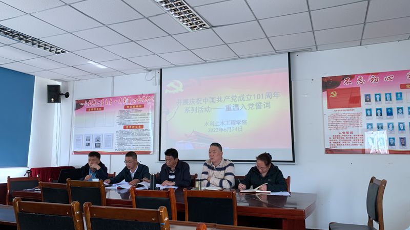 为庆祝中国共产党成立 101 周年,大力宣传党的光辉历程和丰功伟绩,扎实推进进一步改进作风狠抓落实工作,激励各党支部和广大党员干部切实转变作风,积极投身学校高质量发展。2022年6月24日下午,水土学院组织召开“学习老西藏精神,重温入党誓词”主题党日活动,学院党委书记达娃主讲,全院无课教职工参会。