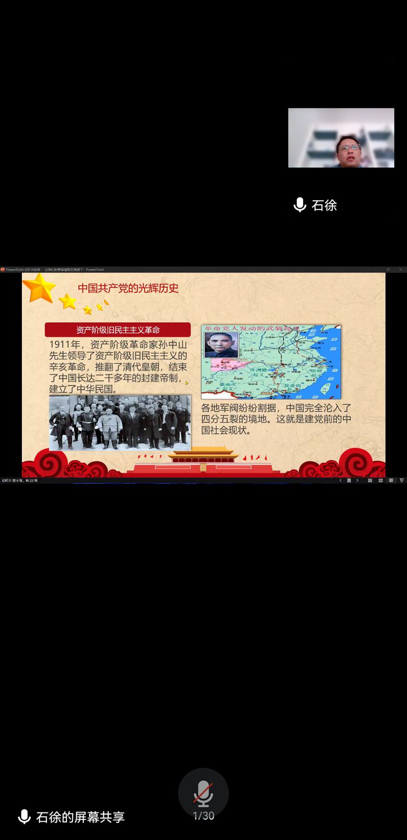 为进一步深入开展党史学习教育,贯彻落实习近平总书记在庆祝中国共产党成立100周年大会上的重要讲话精神,切实做好新生入党启蒙教育,激发学生爱党爱国热情,积极引导学生做社会主义的坚定信仰者和忠实实践者。水利土木工程学院于9月19日下午14:00,在线上召开新生党史学习暨入党启蒙教育大会。此次大会由学生第五党支部书记石徐主讲。