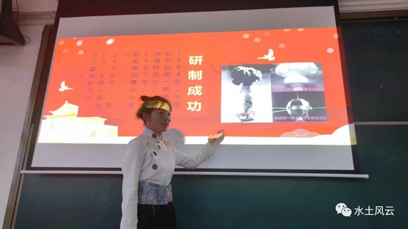 下午7:30分,宣讲会在西藏农牧学院第三教学楼402正式开始。宣讲人洛松曲西带领与会人员系统回顾了我国两弹一星的研制背景和攻坚历史,并以大量历史资料和重点事件重点人物介绍,生动阐述了为两弹一星无私奉献的科技领域英雄们的奋斗故事,将“热爱祖国、无私奉献、自力更生、艰苦奋斗、大力协同、勇于登攀”的两弹一星精神牢牢传递给与会的同学们。本次宣讲会历时一小时。