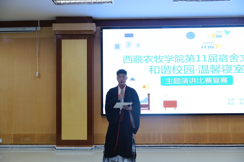 为进一步丰富校园文化生活,全面实施大学生素质教育,提高水利土木工程学院广大学生的文明素养和文化品位,充分发挥校园文化的育人功能,引导广大学生积极参与和谐校园建设。我学院于6月4日19:30在一号报告厅开展“和谐校园,温馨寝室”宿舍文化节主题演讲比赛复赛活动。我院学生科辅导员石徐副科长,校学生会轮值主席、各二级学院学生会轮值主席参加此次活动。