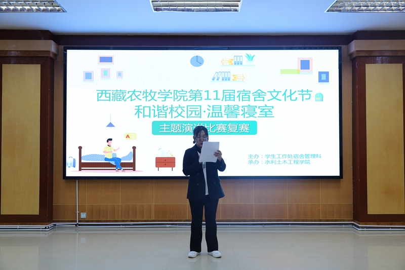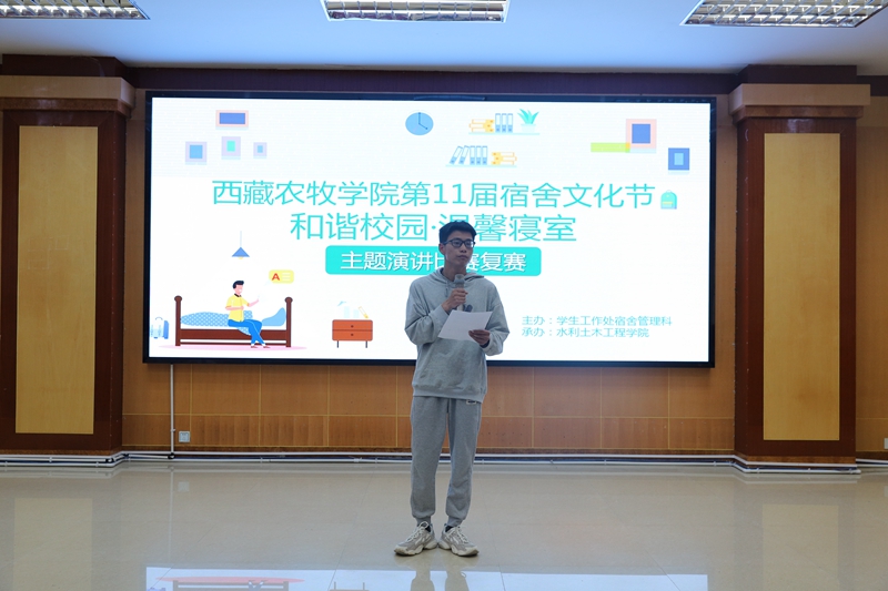 本次活动由学生工作处宿舍管理科主办,水利土木工程学院承办。比赛过程中,17组参赛选手依次上场,情感真挚、妙语连珠、表现优异,演讲声情并茂,语言幽默风趣,又各具特色,纷呈多彩,展现出同学们积极向上、阳光开朗的生活态度,用自己朴实的语言、真挚的情感表达了对宿舍一草一木、一情一景的爱和依恋,博得观众的一致好评。评委从选手形象状态、作品内容思想、舞台效果等几个方面严格打分,最终12组选手晋级决赛。演讲完毕,石徐老师做活动总结性发言,他强调宿舍关系与学风之间具有重大关系,宿舍温馨,校园必定和谐。要求同学们要从人生意义上看宿舍,与舍友相处中逐渐形成正确的“三观”,做到自律有爱,积极营造学习氛围,与舍友共同培养追求卓越的精神且有意义的宿舍生活。