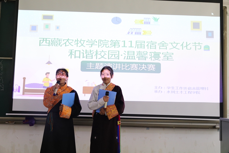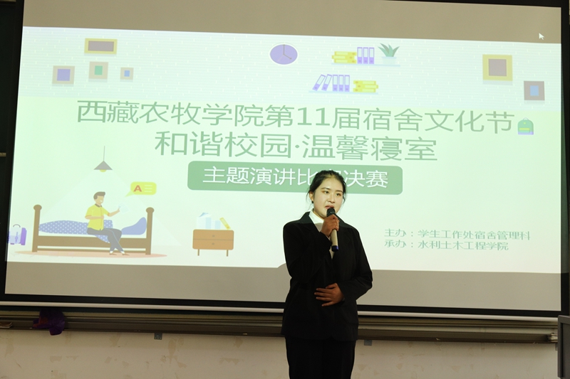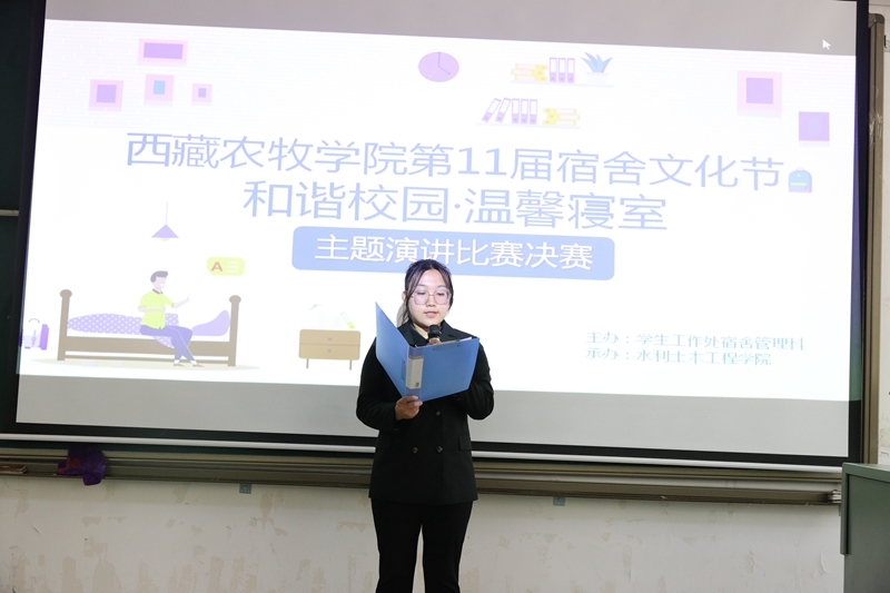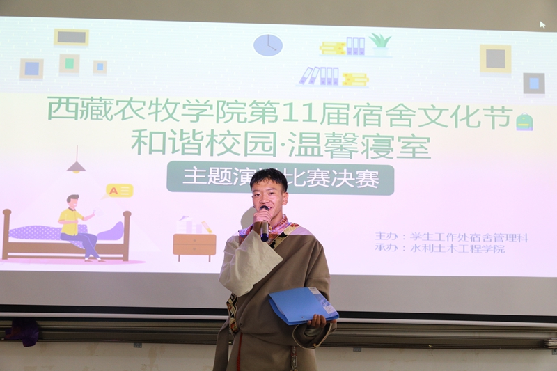 为进一步强化我校“管理育人、服务育人、环境育人”功能,切实提高广大学生人文素养,营造阳光健康、温馨尚学的寝室文化氛围,促进广大学子全面发展。水利土木工程学院于2022年6月12日在第一教学楼107教室承办“和谐校园,温馨寝室”宿舍文化节主题演讲比赛决赛,西藏农牧学院学工处副处长李新堂、洛桑云旦,水利土木工程学院党委副书记潘多、宿舍管理科科长多吉次旦、各二级学院分管宿舍辅导员及80余名同学参与此次活动。