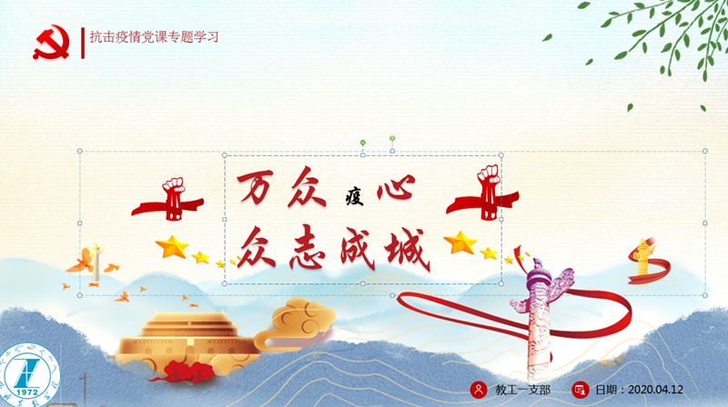 新冠肺炎疫情发生以来,我院师生各党支部和全体党员干部认真学习贯彻落实学校党委安排部署,在疫情防控工作中服从安排、担当尽责,积极作为、践行宗旨,充分发挥了党组织战斗堡垒作用和党员先锋模范作用。在学校坚持“停课不停教”开展线上授课的同时,水土学院党组织坚持“互联网+党建”开展了线上“三会一课”。2020年4月11日上午9:30,一堂党支部书记的线上党课在党支部QQ群里如期举行,教工第一党支部书记宗永臣以《万众“疫”心 众志成城》为题,结合当前的疫情防控工作,聚焦和突出学校正式开学前的疫情防控准备工作,借助精心设计的PPT课件为党支部全体党员从“疫无反顾、疫刀两断、疫差二错、疫言千金、疫点感想”五个方面讲授了精彩生动的一堂党课。党课上,宗永臣书记从国内、国际两种视角阐述了我国在应对突发疫情过程中所彰显的中国制度优势、中国人民优势。课后,党支部15名党员围绕主题、结合工作,在线上积极发言,提交心得体会,谈认识、表决心。