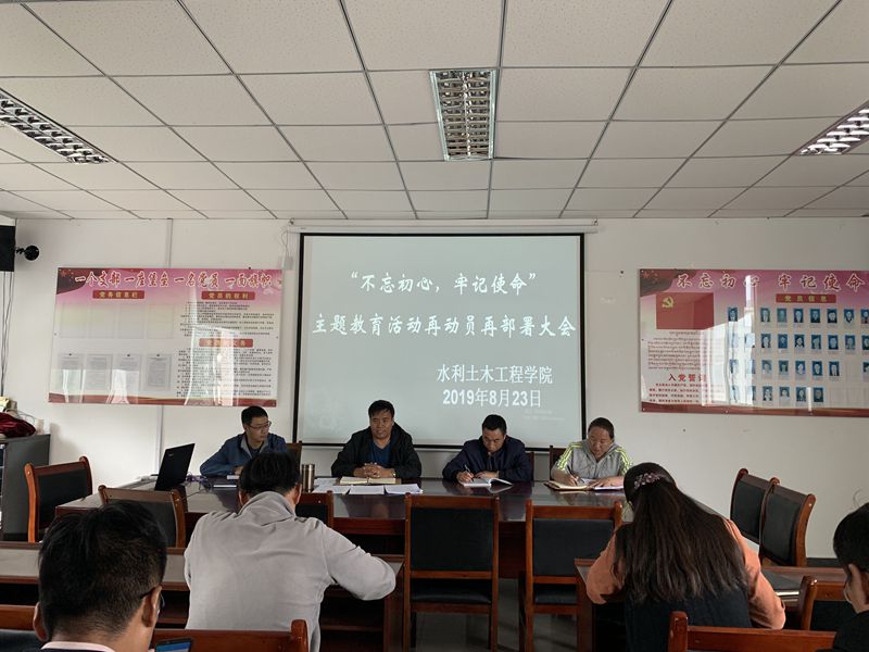 开展情况,就进一步加强集中学习、典型宣传、实践活动等进行再动员再部署,2019年8月23日,我院召开“不忘初心 牢记使命“主题教育活动再部署再动员大会。会议由我院党委书记达瓦主持,全体无课党员参会。