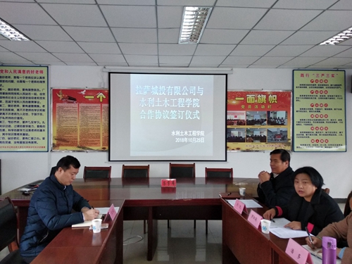为深化人才培养内涵,加强校企合作,推进当前深入开展的教育思想大谈论活动,2018年10月25日上午,拉萨城投有限公司与水利土木工程学院在水土学院会议室举行校企合作框架协议签字仪式,双方围绕校企人才培养、科技服务合作等主题进行了深入的沟通交流,并现场签订协议。会议由我院副院长李成林主持,拉萨城投有限公司副经理史伯强、人力资源部副部长田密、学院班子成员及相关老师参会。
