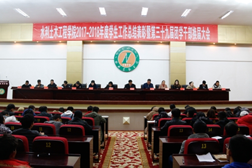 为总结回顾我院学生工作,表彰奖励在学生工作中涌现出来的先进集体和优秀个人,深入推进“两学一做”“四讲四爱”“一学一做”、“过好当下幸福生活”等教育活动,2018年10月28日晚7:00,我院在行政楼一楼会议室召开了学院2017-2018年度学生工作总结表彰暨第39届团学干部换届大会,学院领导达瓦、罗红英、李成林、陆光华、潘多出席会议,李成林副院长主持大会,全体辅导员、学生代表400余人参加了大会。