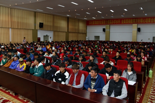 首先,由达瓦书记向与会全体师生宣读了《习近平总书记致西藏民族大学建校60周年的贺信》,代表学院党委提出了学习宣传和贯彻落实贺信精神的意见。他指出,习近平总书记的贺信在西藏民族大学、全区其它各所高校乃至在全区教育系统引起强烈反响,在我院广大师生中也迅即兴起了学习贯彻贺信精神的热潮。他要求,全院上下要以学习贯彻贺信精神为动力,把学习贯彻习近平总书记的贺信精神作为当前和今后一个时期的一项重大政治任务,一是要坚定不移加强党对学校工作的全面领导,坚持社会主义办学方向,全面落实新时代党的建设总要求,毫不动摇地把党的政治建设摆在首位,坚持党管办学方向、党管改革发展,把树牢“四个意识”、坚定“四个自信”、做到“两个维护”作为根本和灵魂;二是要坚定不移培育和践行社会主义核心价值观,紧紧围绕“培养什么人、怎样培养人、为谁培养人”这一根本问题,强化教育引导、实践养成、组织保障,开展好“过好当下幸福生活”专题教育,深化民族团结进步教育,牢牢掌握意识形态工作领导权,把社会主义核心价值观融入学校教育的各方面,教育引导广大师生自觉抵制宗教消极影响;三是要坚定不移落实“立德树人”根本任务,坚持“以本为本”、推进“四个回归”,贯彻落实好总书记关于“四有好老师”“四个引路人”“四个相统一”的重要指示精神,不断提高教育教学质量,提升教师思想政治素质和师德涵养,把争做“神圣国土守护者、幸福家园建设者”活动与理想信念教育紧密结合,把“过好当下幸福生活”专题教育与反分裂斗争教育紧密结合,牢固树立马克思主义“五观”“两论”,使学校始终成为培养“靠得住、用得上、留得下”的社会主义建设者和接班人的坚强阵地。