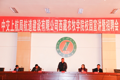 在大学毕业生就业形势日趋严峻的背景下,以市场就业为主导的就业导向逐渐得到了广大毕业生的认可,到企业去就业成为毕业生实现就业的重要渠道和途径。为加强校企合作,提升学校和企业的社会知名度,在广大学生中广泛宣传企业文化,转变我院毕业生的就业观念,积极推荐毕业生到企业实现就业,提高毕业生就业质量,实现毕业生稳定就业工作目标,经过水土学院与中交上航局航道建设有限公司沟通协调和共同努力,2018年11月8日下午,中交上航局航道建设有限公司企业文化宣讲暨校园招聘会在学校一号行政一楼会议室隆重举行。公司常务副总经理徐贺彪、人事部部长刘丽江、西藏区域公司经理张会强、西藏区域公司副总经理朱世城、水土学院党委书记达瓦、就业辅导员孙凤荣、曹志翔教授以及前来应聘和聆听宣讲的340余名毕业生参加了活动。会议由达瓦主持。