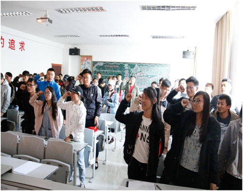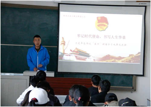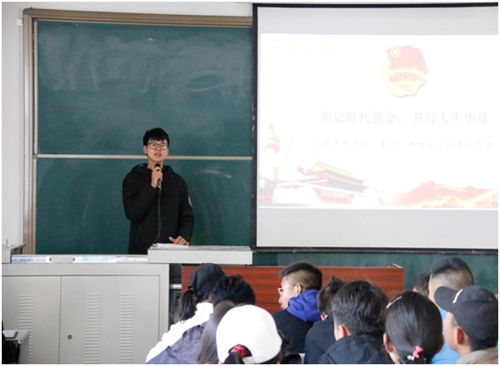 在交流会上,我院团干部、青年团员代表依次上台分享交流各自的学习成果。15级团支书杨世炬在分享学习成果时感慨道:通过学习习近平总书记在北大师生座谈会上的讲话内容,深切感受到习近平总书记对青年学生的亲切关怀,讲话非常振奋人心,作为团干部我们要自觉维护以习近平同志为核心的党中央权威,团结各族青年同学,不断提高自己的思想政治水平、工作组织能力,不断提高共青团组织的感染力和号召力;青年志愿者协会副主席顿珠扎西表示,青协在下一步工作中将会把习近平总书记的讲话精神贯穿到社团工作中,学以致用,全心全意创新性开展志愿服务工作;工程实践协会主席郝凯越表示,我将好好学思践悟,一定会发挥好工科社团的优势,助力我院学生实践动手能力的不断提高;传媒部部长马天雨讲道,通过学习习近平总书记讲话精神深刻认识到了舆论宣传的重要性和把握到了宣传内容,下一步将在宣传报道方面积极发挥好舆论阵地宣传正能量的作用;由团干部司润川给大家讲述了马克思与妻子燕妮的艰难爱情故事,赞美燕妮对马克思的忠贞不渝和大力支持,号召大家学习青年马克思追求真理的革命精神和克服艰难险阻的进取精神。会后最后,主持人杨世炬带领全体与会人员重温入团诗词、坚定入团信念,并在第四教学楼前与团旗合影。