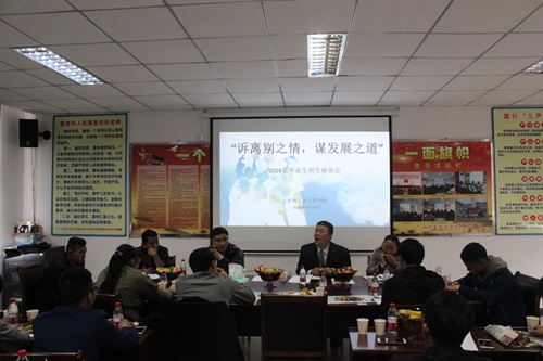 为欢送水土学院2018届毕业生,进一步增进师生情谊,征求毕业生对学院今后发展的宝贵意见建议,推进“四讲四爱”主题教育,促进“两学一做”学习教育,促进毕业生就业工作,2018年5月29日下午,我院在学院会议室召开了欢送毕业生座谈会,学院领导、教职工代表、毕业生和在校生代表参加了座谈会。