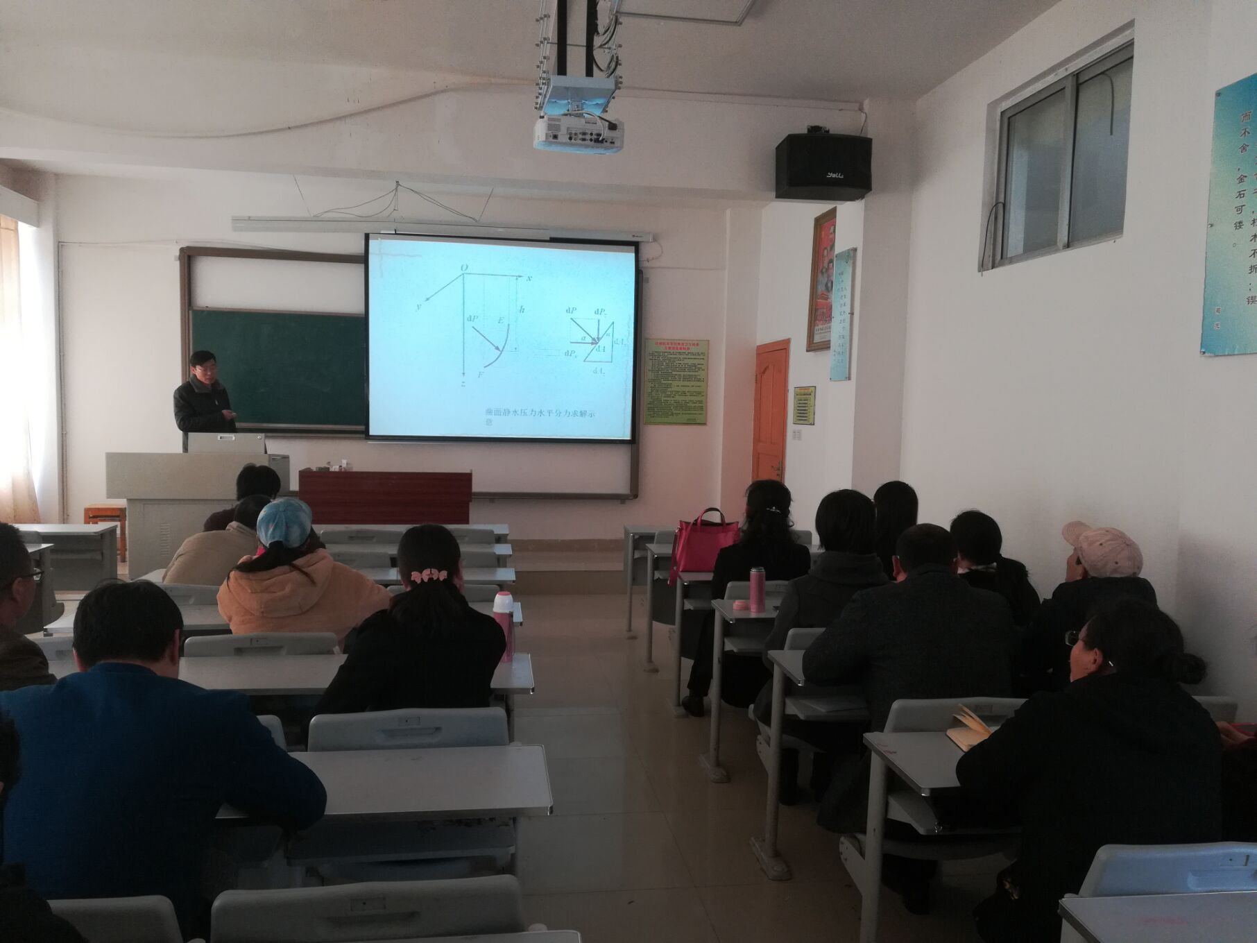 在《水力学》课程示范课上,我院教学能手曹志翔教授以PPT形式,以教学能手的风范和极强的教学基本功底,用直观的工程图例引入水力学问题,对问题阐述通过例题和典型案例深入浅出的讲解,使教学内容表述的非常清楚充实,为广大教师起到了精彩的示范。曹教授要求年青教师《水力学》授课要针对不同的专业和不同的学生而因材施教、侧重点不同;备课要精、内容要实,吃透教材、大纲、学生实际,广泛拓展水力学相关知识,认真批改教材,及时反馈学生学习情况。