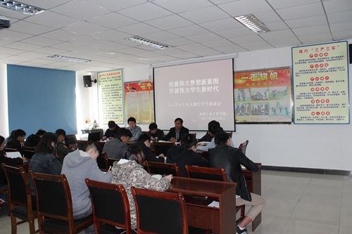 2017年10月18日,中国共产党第十九次全国代表大会在北京隆重召开,习近平代表第十八届中央委员会向大会作了报告。当日,水土学院全体师生在学校的统一组织下,在文体馆收听收看了开幕盛会,聆听了总书记所作报告。习近平总书记所作的报告在我院广大师生中引起了强烈反响。会后,我院师生通过电视、手机、网络、校内宣传阵地加强学习、提高认识、领会精神、掌握要点,掀起了学习宣传热潮。10月20日下午,在学院党委的统一安排下,我院两个教职工党支部、学生党团学干部召开座谈会,畅谈感想体会、分享学习心得、共话责任担当、表达态度决心。学院领导达瓦、罗红英、潘多、李成林等以普通党员身份、联系领导身份参加了师生座谈会,全体教职工党员、30多名学生代表参加了座谈会。同时,学院也通过新媒体、宣传展板、专题学习会等多样形式加强学习宣传,营造了良好的学习宣传氛围,取得了良好的成效。
