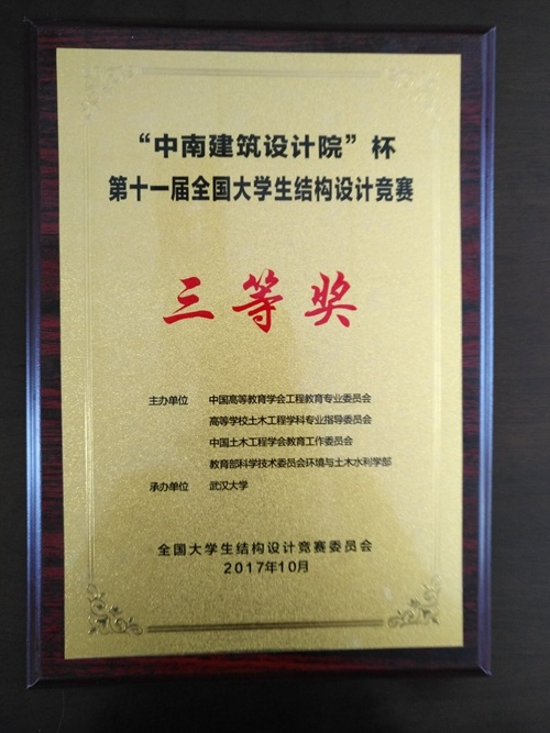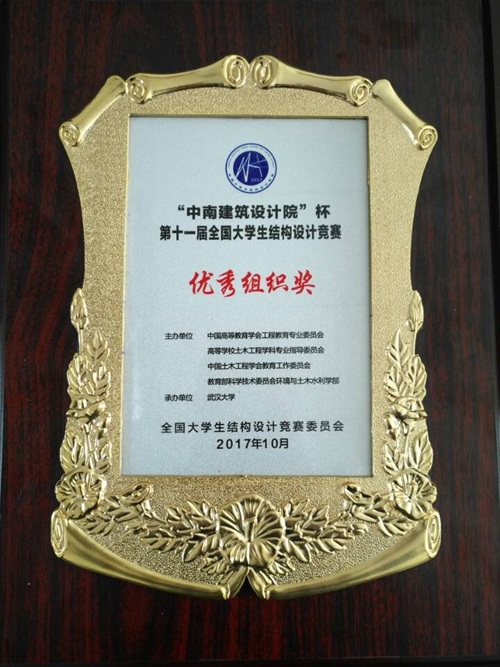 全国大学生结构模型设计竞赛是中国高等教育学会工程教育专业委员会、高等学校土木工程学科专业指导委员会、中国土木工程学会教育工作委员会和教育部科学技术委员会环境与土木水利学部共同主办,该竞赛是全国9项大学生学科竞赛之一,是土木工程学科培养大学生创新精神、团队意识和实践能力的最高水平学科竞赛。本届竞赛由武汉大学承办,竞赛的题目为渡槽支承系统结构设计与制作。竞赛从2005年第一届在浙江大学举办算起,截止今年先后共举办了十一届,每届得到全国各高校的高度重视、积极参与,是各级各类高校加强合作、交流学习、同台竞技、拓展视野等重要平台,其规模、影响、效果甚大。