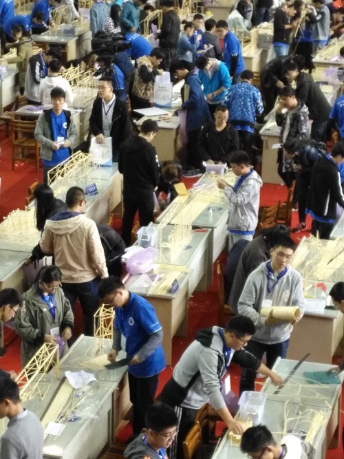 竞赛从10月18日至10月22日共计5天,18日晚18时开始至22日上午10时止,共计18小时为制作模型时间,22日晚上18点开始正式进行加载试验,来自全国27个省、市、自治区、特别行政区的107所高校,共108支参赛队近324名大学生参加了角逐。此次竞赛从模型称重、加载实验、设计说明书、现场描述模型及回答专家提问等方面进行综合评分,各高校之间进行了同台竞技、交流学习、增进了友谊、加深了了解,取得了交流合作、共同学习进步。