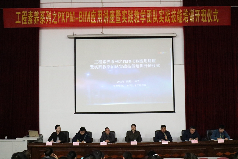 2019年11月22日,由教务处主办,水利土木工程学院协办的工程素养PKPM-BIM专项讲座暨实践教学团队实战技能培训在2107学术报告厅举行了开班仪式。出席此次活动的有副校长郭永刚、教务处副处长冯建刚、中国建筑科学研究院北京构力科技有限公司西南分公司范永扬高级工程师、北京构力科技有限公司深圳分公司产品经理苏欣高级工程师、水利土木工程学院院长黎普明、水利土木工程学院副院长李成林、水利土木工程学院副院长易辉,水利土木工程学院土木工程教研室全体教师及相关专业近300名学生参加。